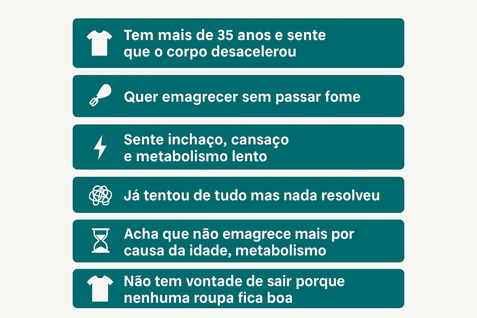 Sim. O método foi criado justamente para reprogramar o metabolismo da mulher madura, ajustando hormônios queimadores de gordura e reduzindo inflamação.